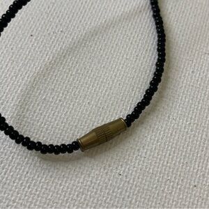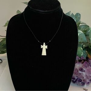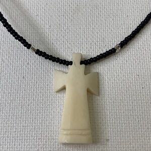 Really nice hand carved cow bone cross with black seeds beads and clear seed bead accents.