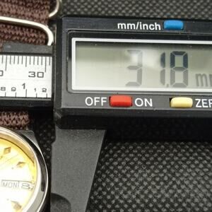 This watch has a stainless steel case in great condition with almost no flaws. The face features Gold accents on a Striped Face giving an awesome vintage look overall. It also has a date function!