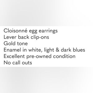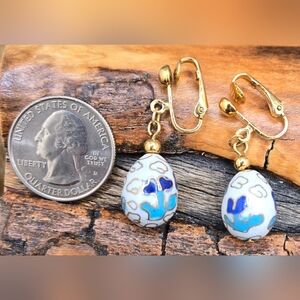 Cloisonné Egg Earrings Lever Back Clip-ons White Blue Gold Colors EUC
