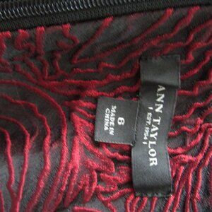 Ann Taylor women's skirt - textured pattern, A-line silhouette, back zipper closure and fully lined. Black and red.