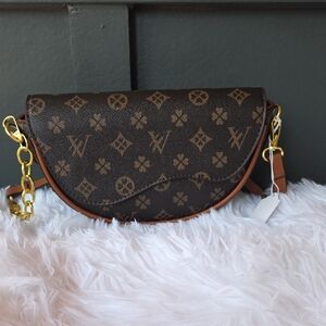 This chic black clutch features a striking gold handle, perfect for adding a touch of elegance to any outfit. Ideal for evening events or a stylish day out. Has removable shoulder strap. New!