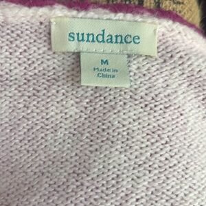 Sundance magenta purple V-neck long sleeve sweater w cream floral paisley detail