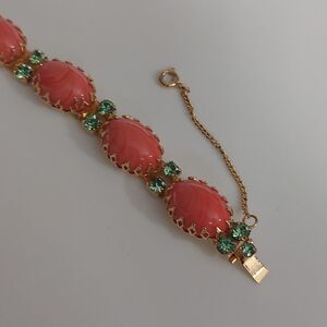 Hattie Carnegie Marbled Lucite Cabochon and Peridot Green Stones Link Bracelet