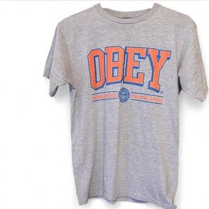 Obey Gray and Orange Short Sleeve Tee