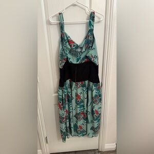 Trashy Diva Elegant dress with teal and black pattern. Perfect for any occasion. EUC size 24.