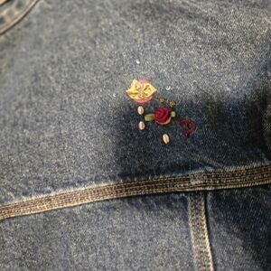 Chic denim jacket with vibrant floral embroidery, perfect for a stylish casual look. Purchased at boutique paid $60 wore once