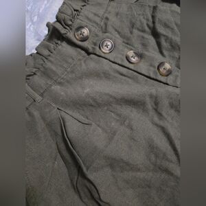 Chic high waist shorts with button front. Features ruffle trim and side pockets.