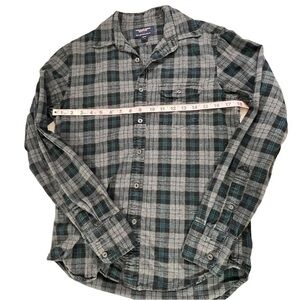 AMERICAN Eagle Black Teal Plaid Button Down Flannel Long Sleeved Shirt Slim Fit