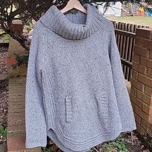 Cynthia Rowley Chunky Thick Cowl Neck‎ Wool Blend Sweater Kangaroo Pocket Sz L