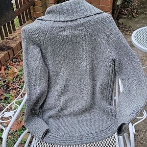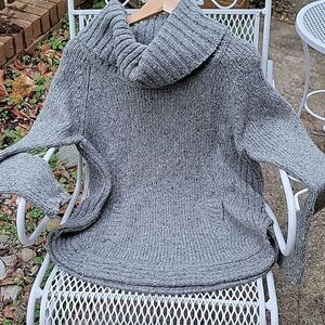 Cynthia Rowley thick wool blend sweater L with a cowlneck collar and a functional kangaroo pocket. 50% acrylic 50% wool measurements length 27" width 21.5" sleeve length 22"
