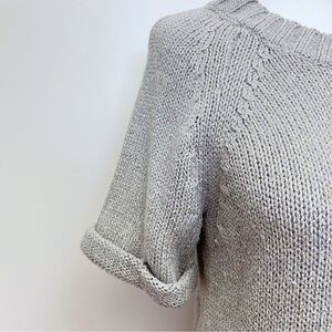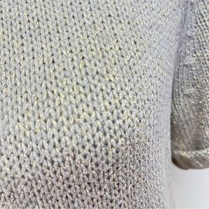 Banana Republic Grey Knit Gold Metallic Threaded Short Sleeve Wool Blend Sweater