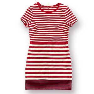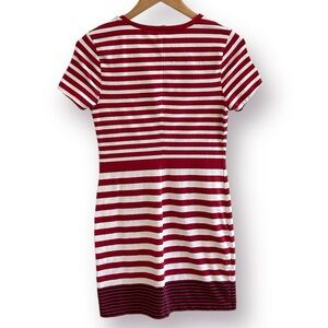 Stylish red and white striped dress. Short sleeves. Perfect for casual outings.