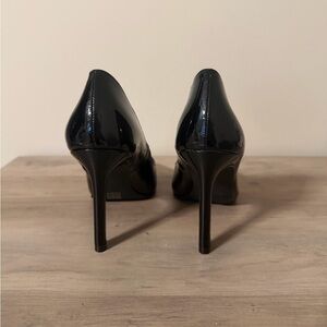 Patent Leather Pumps. Crafted with high-quality materials, these shoes feature a pointed toe and a slip-on closure that will keep you comfortable all day long.