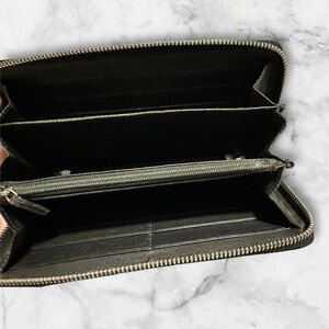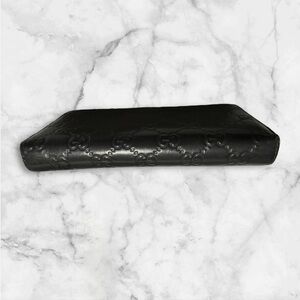 Black Gucci Guccissima Zippy Wallet with silvertone hardware featuring the iconic Interlocking G motif zipper pull, in beautiful preowned condition!