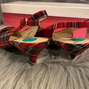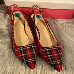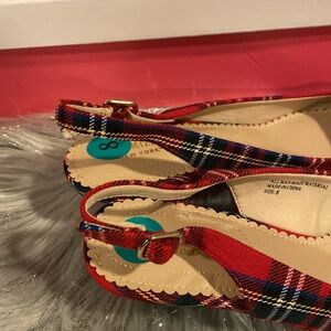 BNWT ISAAC MIZRAHI Viral Red Green Plaid Flat Shoes Women's Size 8