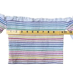 Aqua Rainbow Stripe Off Shoulder Smocked Ruffle Crop Top - Size XS