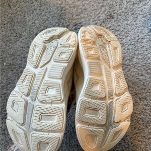 Lightly worn comfortable Hoka sneakers in beige. Ideal for running and daily wear. Size 8.5