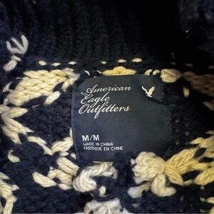 American Eagle Navy Blue and Cream Knit Sweater Size Medium