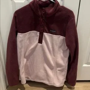 Warm Columbia fleece with maroon top and light pink bottom. Ideal for cool weather.