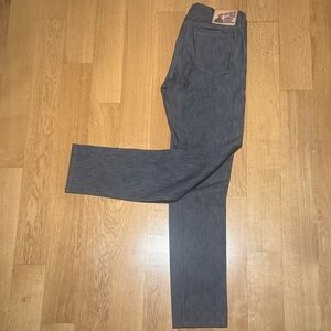 A bit too large for me in the waste now. Japanese selvedge "Jelt" denim from Left Field NYC, worn only a few times and in near brand new condition. Made in USA