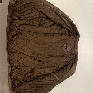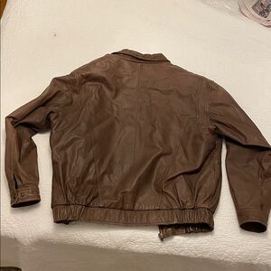 Stylish brown leather jacket with front zipper and pockets. Vintage.