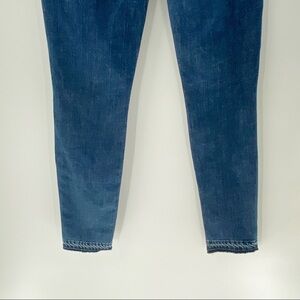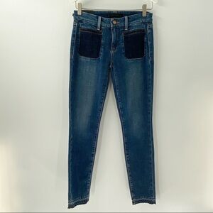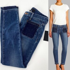 Genetic Bardot patch pocket skinny jeans with worn detailing at ankles and contrast patches at the hips, welt front pockets and patch back pockets. Single button closure and zip fly. NWT