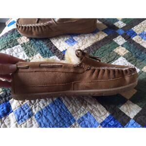 L.L.Bean Wicked Good Moccasin Slippers Men's Sz 8 Genuine Shearling Fur Suede