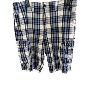Distressed one-half denim. one-half flannel check shirt patches front and back, including on sleeves. 2 front button pockets. Button up. 27" pit to pit, 25" shoulder to hem length, 18" sleeve pit to end. Excellent condition. So Goods Brand