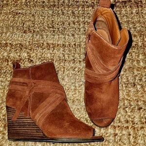 Chic black leather with brown accents. Features a gold zipper and tassel detail. Perfect for any occasion. Good condition.