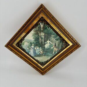 Vintage Gold Framed Rococo Style Lithograph Wall Art 11.5"x11.5" Diamond
