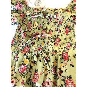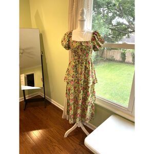 Rebellion Smocked Floral Maxi Dress Size M Puff Sleeves Bows Tiered BNWT