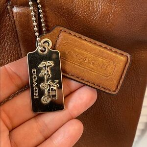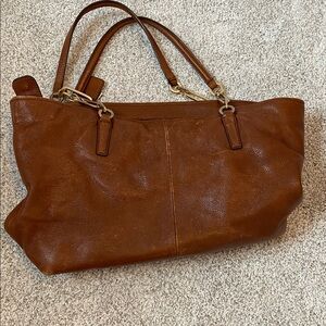 Stylish Coach tote in tan leather. Ideal for daily use. Elegant and practical design.