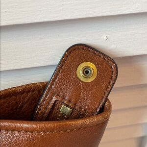 And as always the inside does show stains like so many purses . Super cute brown cognac color back goes with anything. Broke in so not stiff !