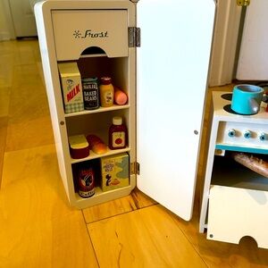The box includes a selection of food including cereal, jam, salami, ketchup, milk, coffee, beans, a baguette, and a cheese block. All the food your Maileg friends will enjoy! Perfect for all Medium sizes and under.