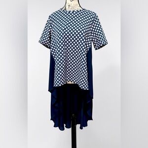 Stylish DG2 by Diane Gilman High-Low Hem, Blue Nylon Backside Tunic Tunic Top M