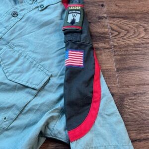 The TRAIL LIFE USA Official Troop Uniform Shirt is a men's large, green button-up shirt with short sleeves. It is adorned with an embroidered leader design, making it a stylish and unique addition to any wardrobe. This shirt is perfect for those interested in outdoor activities and Americana themes, embodying the spirit of Trail Life USA.