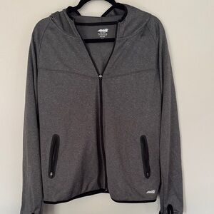 Stylish gray top with ribbed neckline. Perfect for casual wear.