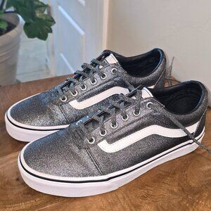 These sneakers are clean, comfy, and ready for their next owner. A rare glitter edition that adds a little extra shine to the iconic Vans look!