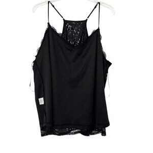 Andree By Unit Black Sexy Sequins Spaghetti Strap Lace Trim Cami Tank Top (1X)