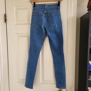 Elevate your style with these chic blue high-waisted skinny jeans. Perfect for any occasion, they offer a flattering fit and timeless look.