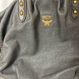 Chic MCM shoulder bag in black leather. Features sturdy handles and gold accents. Ideal for everyday use.