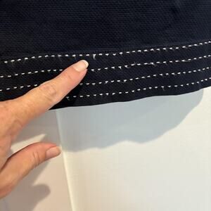 Condition: Good pre-owned condition with some visible pulls and loose threads in the white stitched hem detail (see close-up photos). No major holes or stains. All buttons and zippers function properly.