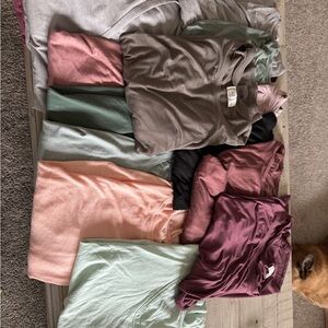 Pink BS flare fold over leggings. One green pair a little wear on bottom of legs but I. Good condition.