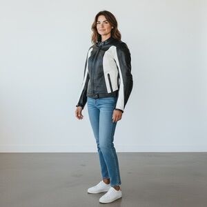 BILT Womens Leather Motorcycle Jacket With Padding sz S black white