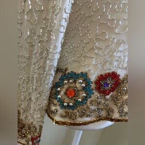 VINTAGE Sequin Beaded women’s 100% Silk Jacket sz 8 Floral Embellished Colorful