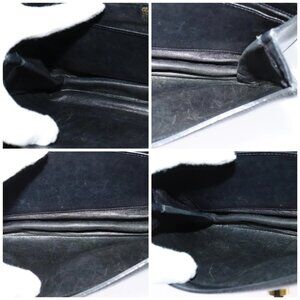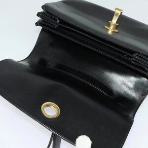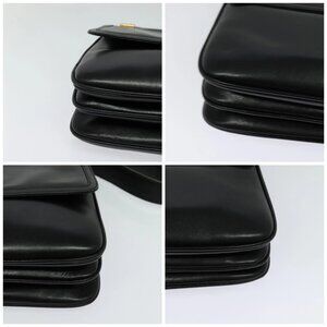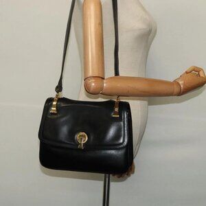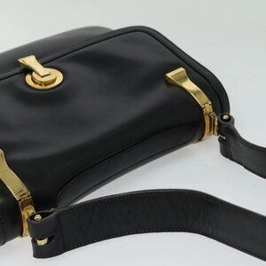 GUCCI Shoulder Bag Leather Black Gold Auth