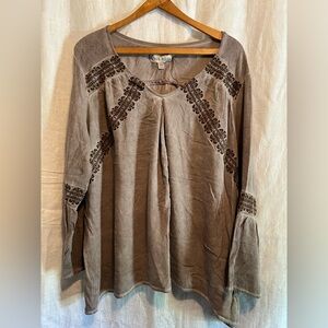 Knox Rose Gray Brown Blouse with Chic Detailing XXL. Boho design