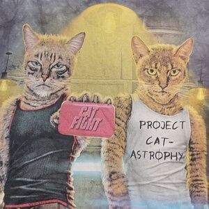 Stylish gray t-shirt featuring a fun cat graphic. Perfect for cat lovers.