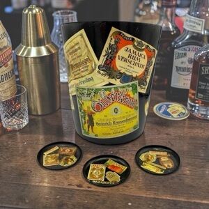 Vintage Roshco TileWare Cobalt Blue Baker Graphic Tile Ceramic Square Canister