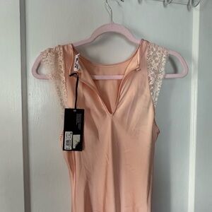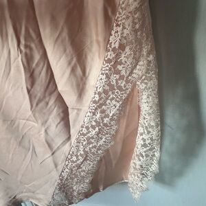 This elegant silky peach maxi dress is perfect for any occasion. Its soft fabric and delicate lace details add a touch of sophistication. Ideal for a stylish and comfortable look.
